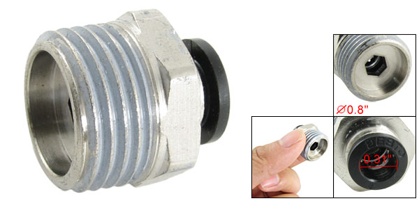 Details20.5mm Thread 8mm Connector Pneumatic Tube Fittings  Item Name Quick Fittings Total Size 22 x 20.7mm/0.87" x 0.81"(L*W) Thread Diameter 20.5mm/0.8" Inner Diameter (Black End) 8mm/0.31" Material Alloy & Plastic Color Silver Tone, Black Weight 30g Package Content 1 x Quick Fittings