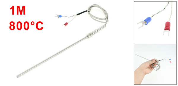 Product Name Thermocouple Type K Type Temperature Range 800°C(32-752°F) Probe Diameter 5mm / 0.2" Probe Length 20cm / 7.9" (Not Included Flexible Section) Thread Diameter 7.5mm / 0.3" Internal Insulation Fibreglass External Shielding Metal Shield Total Length 1M / 3.28ft Fork Terminal Spacing 4mm / 0.16" Color Silver Tone Weight 30g Package Content 1 x Type K Thermocouple - Reviews