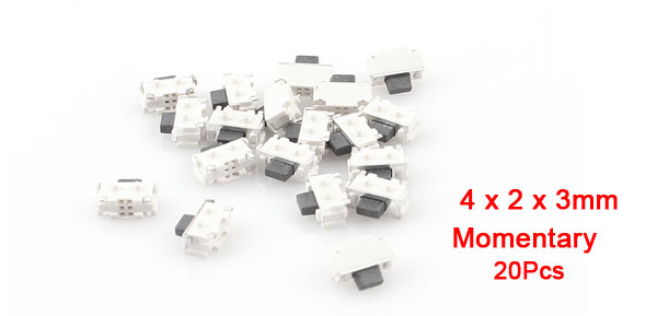 Product Name Tact Switch Acuion Type Momentary Switch Size 4 x 2 x 3mm / 0.16" x 0.08" x 0.1"(L*W*T) Material Plastic, Metal, Electric Parts Color White, Black Weight 2g Package Content 20 x Tact Switches - Reviews