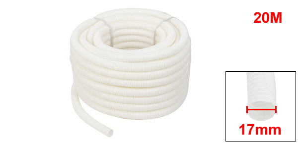 Product Name Corrugated Tube Color White Tube Outside Dia 19mm/ 47/64" Tube Inside Dia 17mm/ 43/64" Length ( approx.) 20M/ 65.6 Ft Material Plastic Weight 375g Package 1 x Corrugated Tube - Reviews