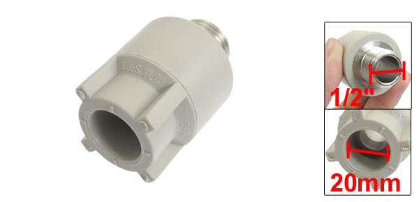 Product Name Pipe Connector Design Straight Ends Slip x Male Thread Slip End Dia. 20mm Thread Dia. 21mm/1/2"PT Overall Size (Approx.) 38 x 56mm/ 1.5" x 2.2" mm/ (D*L) Material PPR, Metal Color Gray Net Weight 97g Package Content 1 x Pipe Connector - Reviews