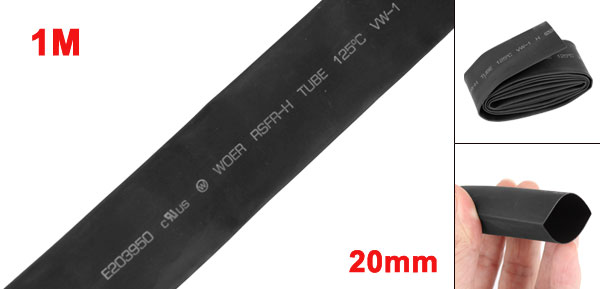 20mm Diameter Heat Shrinkable Tube Shrink Tubing 1M 3.28ft Black