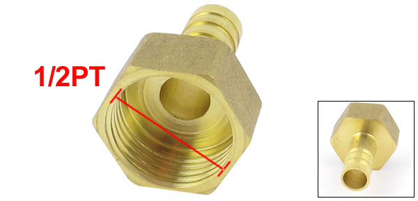 Product Name Brass Hose Connector Material Brass Color Gold Tone Female Thread Dia 1/2PT(20mm ) Fit for Hose Outer Dia 10mm / 0.4" Hex Width 22mm/ 0.83" Net Weight 18g Package Content 1 x Brass Hose Connector
