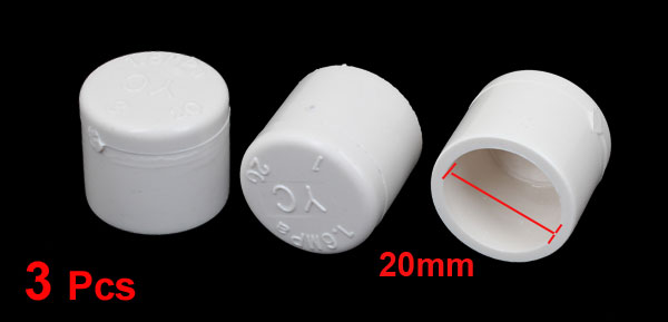 20mm Inner Dia White PVC Hose Tube End Fitting Adapter Caps 3PCS