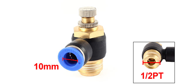 Product Name Pneumatic Speed Controller Model SL10-04 Inner Diameter (Blue End) 10mm / 0.39" Thread Outer Diameter 20mm / 1/2PT Total Size 51 x 48x 26mm / 2" x 1.9" x 1" (L*W*T) Main Material Plastic, Metal Color Blue, Black, Silver Tone, Gold Tone Weight 78g Package Content 1 x Speed Controller - Reviews