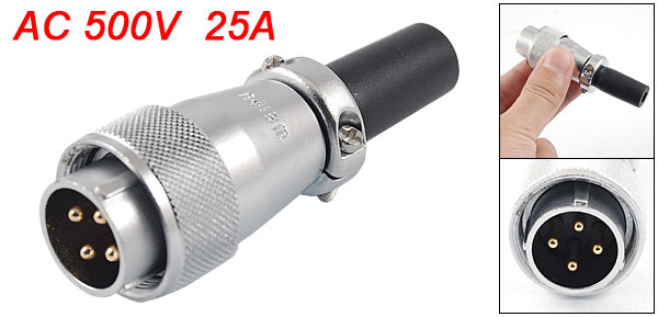 20mm Mounting Hole 4 Pins Cable Sleeve Aviation Connector Plug AC 500V