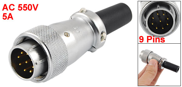 20mm Mounting Hole 9 Pins Aviation Air Connector Plug AC 550V 5A