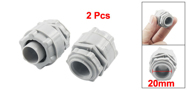 20mm Thread Outside Diameter Grey Plastic Waterproof Cable Gland Joint 2 Pcs