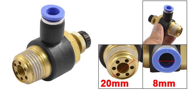 20mm Threaded 8mm One Touch Tube Speed Control Valve Connector