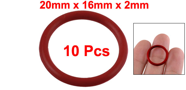20mm x 16mm x 2mm Red Rubber O Shaped Rings Oil Seal Gasket Washer 10 Pcs
