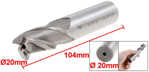 20mm x 20mm x 38mm x 104mm 3 Flutes Straight HSS End Mill Milling Cutter