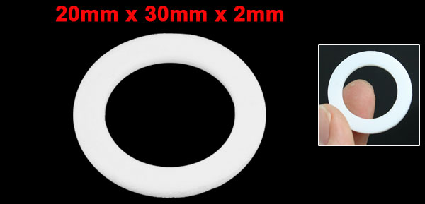 Product Name Flat PTFE Gasket Type Flat Material Polytetrafluoethylene(PTFE) Inside Diameter 20mm / 25/32"(0.787") Outside Diameter 30mm / 1 3/16"(1.18") Thickness 2mm / 5/64"(0.787") Color White Net Weight 3g Package Content 1 x Flat PTFE Gasket - Reviews
