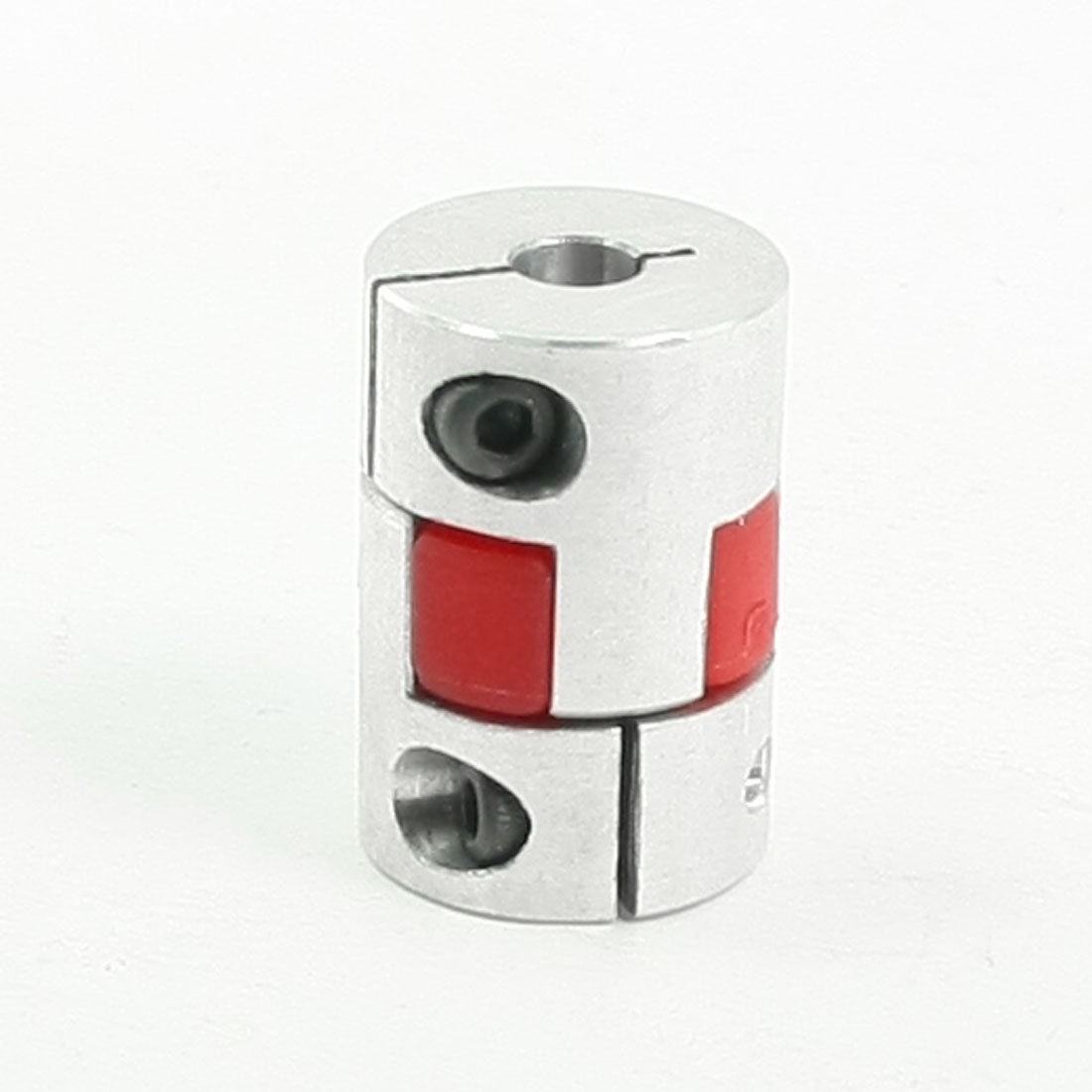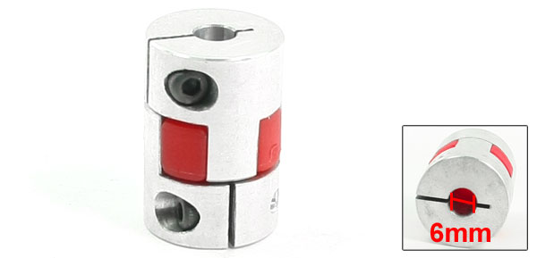 Product Name Coupling Type Plum Shaped Shaft Usage 6 x 6mm / 0.23" x 0.23" Length 30mm / 1.1" Diameter 20mm / 0.8" Material Body: Aluminum Alloy Sleeve: Polyurethane Color Silver Tone, Red Weight 21g Package Content 1 x Plum Coupling  - Reviews