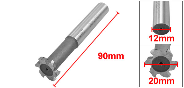 Product Name T Slot End Mill Material HSS Flute Number 6 Color Gray Cutting Diameter 20mm/ 25/32" Cutting Depth 3mm/ 3/25" Shank Diameter 12mm/ 15/32" Total Length 90mm/ 3.5" Weight 90g Package Content 1 x T Slot End Mill