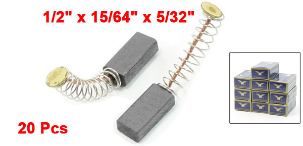 Details20Pcs 1/2" x 15/64" x 5/32" Motor Carbon Brushes for Power Tool  Product Name Carbon Brush Carbon Brush Size (Approx) 12.8 x 5.9 x 3.9mm / 1/2" x 15/64" x 5/32"(L*W*T) Wire Length 20mm / 0.8" Material Carbon, Metal Main Color Dark Gray Net Weight 63g Package Content 20 Pcs x Carbon Brush