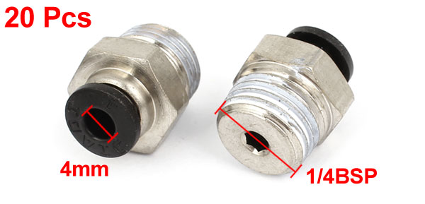 20Pcs 1/4BSP Male Thread 4mm Push In Joint Pneumatic Connector Quick Fittings