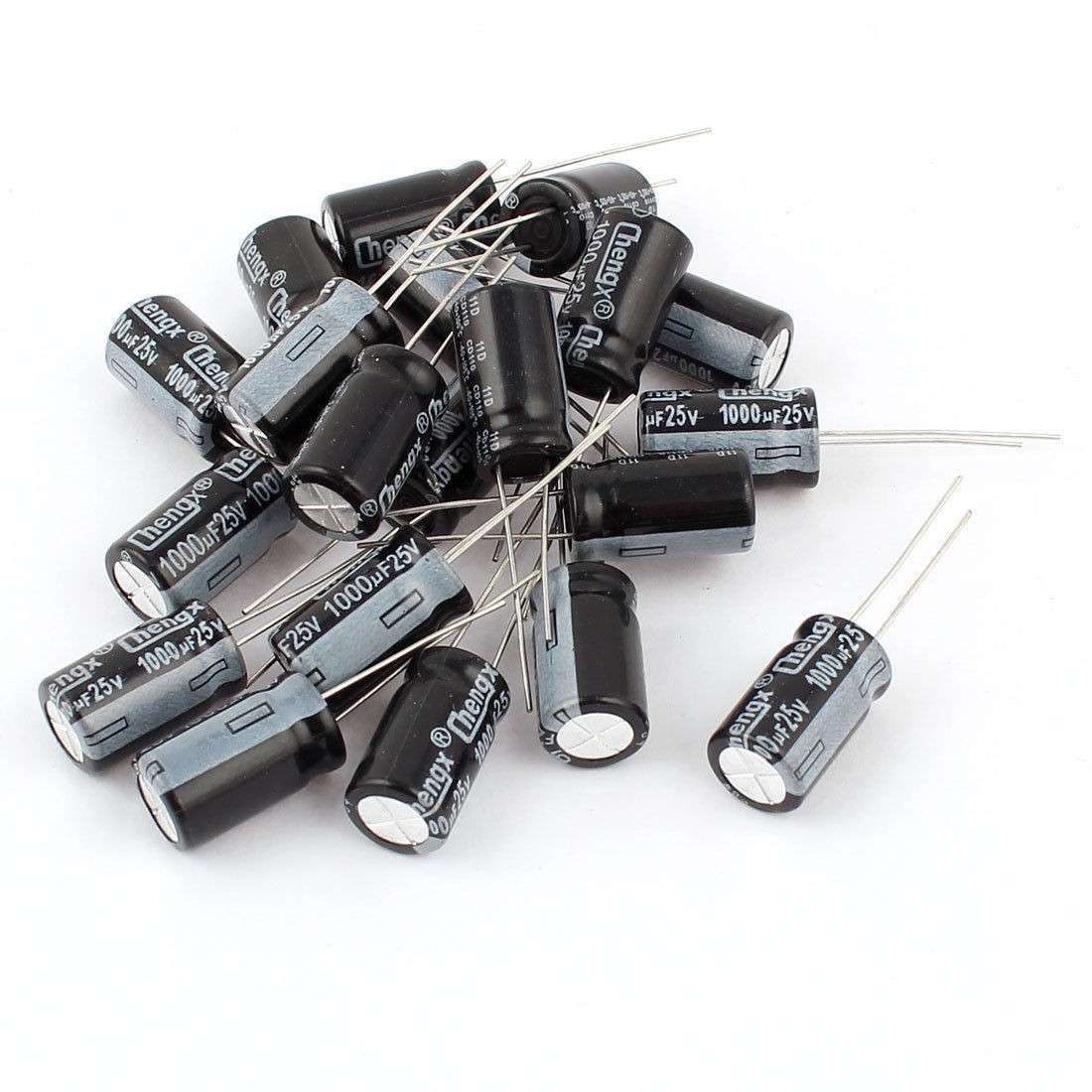 20Pcs 1000UF 25V Radial Leads Cylindrical Electrolytic Capacitor 10mm x 17mm