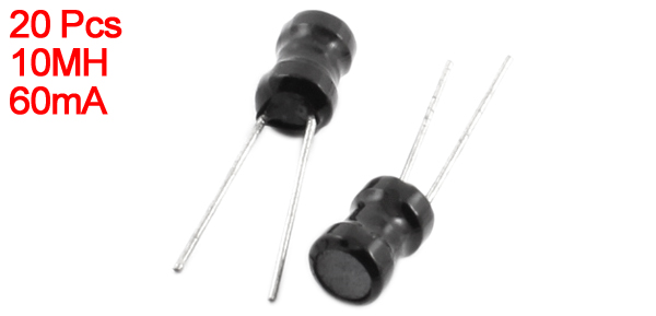 Product Name Radial Lead Inductor Inductance 10mH Rating Current 60mA Tolerance 10% Body Size 4 x 6mm / 0.16" x 0.24"(D*H) Lead Distance 2mm / 0.08" Color Black, Silver Tone Weight 7g Package Content 20 x Radial Lead Inductor - Reviews