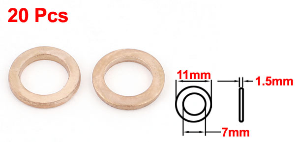 20PCS 11mm OD 7mm ID 1.5mm Thick Copper Washer Flat Ring Oil Brake Line Seal