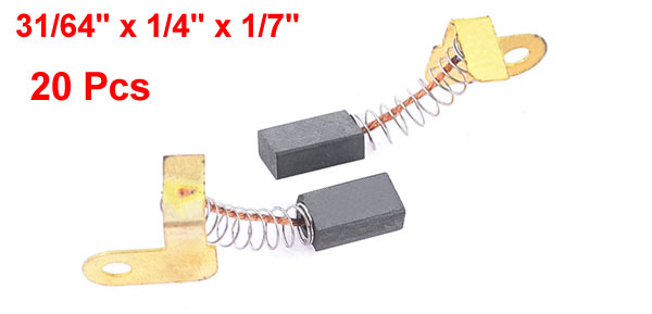 Product Name Carbon Brush Carbon Brush Size (Approx) 12.3 x 6.5 x 3.8mm/ 31/64" x 1/4" x 1/7"(L*W*H) Hole Diameter 3.4mm/0.1" Total Length(flat) 30mm/ 1.2" Material Carbon, Metal Weight 80g Package Content 10 Pair x Carbon Brushes - Reviews