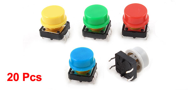 20pcs 12mmx12mmx7.3mm 4P DIP PCB Mount Momentary Tactile Switch w Caps