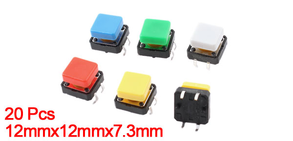 20pcs 12x12x7.3mm 4Pin DIP Through Hole Mount Momentary Tact Switch w Square Cap