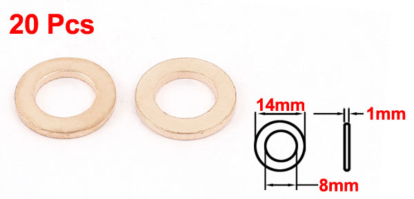 20PCS 14mm OD 8mm ID 1mm Thick Copper Washer Flat Ring Oil Brake Line Seal