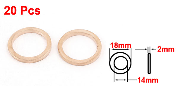 20Pcs 14mmx18mmx2mm Copper Crush Washer Flat Ring Gasket Fitting