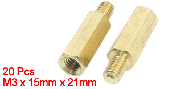 20Pcs 15mm x 21mm M3 Male Female Threaded Brass Hexagonal Standoff Spacer