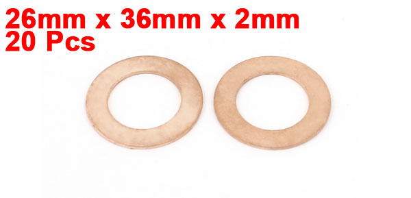 Product Name Copper Washer Total Size 26 x 36 x 2mm/1" x 1.4" x 0.08"(Inner Dia*OD*T) Material Copper Color Copper Tone Net Weight 106g Package Content 20 x Copper Washers - Reviews