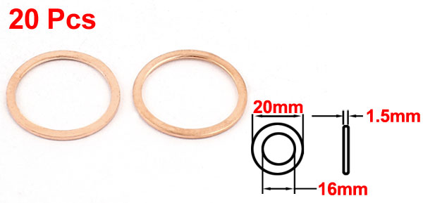 Details20pcs 16x20x1.5mm Copper Flat Washer Gasket Spacer Seal Fitting Fasteners  Product Name Copper Washer Total Size 16 x 20 x 1.5mm/0.63" x 0.8" x 0.06"(Inner Dia*OD*T) Material Copper Color Copper Tone Net Weight 27g Package Content 20 x Copper Washers