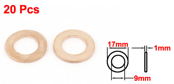 20PCS 17mm OD 9mm ID 1mm Thick Copper Washer Flat Ring Oil Brake Line Seal