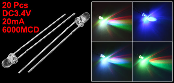 Product Name Light Emitting Diode Material Metal, Plastic Emitting Light Color 7-Color Pin Numbers 2 Voltage DC3.4V Current 20mA Luminous Flux 6000MCD Head Size(Approx) 5 x 3mm/ 0.2" x 0.12"(L*D) Total Length 35mm/ 1.4" Head Housing Color Clear, Silver Tone Net Weight 5g Package Content 20 x Light Emitting Diode - Reviews