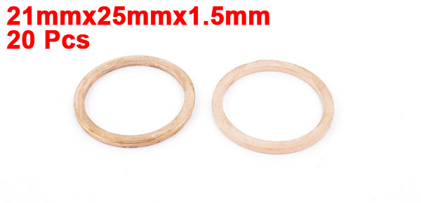 Details20Pcs 21mmx25mmx1.5mm Copper Flat Washer Gasket Spacer Seal Fitting Fasteners  Product Name Copper Washer Total Size 21 x 25 x 1.5mm/0.83" x 1" x 0.06"(Inner Dia*OD*T) Material Copper Color Copper Tone Net Weight 36g Package Content 20 x Copper Washers