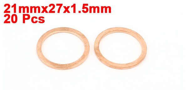 Details20pcs 21mmx27x1.5mm Copper Flat Washer Gasket Seal Fitting Tightening Fasteners  Product Name Copper Washer Total Size 21 x 27 x 1.5mm/0.83" x 1.1" x 0.06"(Inner Dia*OD*T) Material Copper Color Copper Tone Net Weight 52g Package Content 20 x Copper Washers