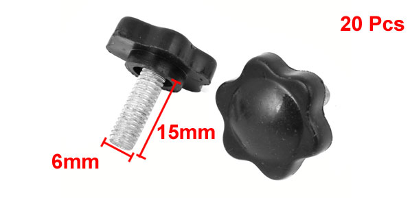 20pcs 25mm Dia Star Shaped Head M6 x 15mm Male Thread Clamping Screw Knob