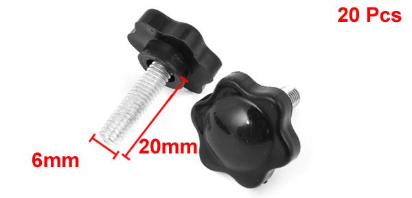20Pcs 25mm Dia Star Shaped Head M6 x 20mm Male Thread Clamping Screw Knob