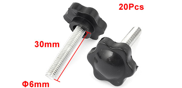 20Pcs 25mm Dia Star Shaped Head M6x30mm Male Thread Clamping Screw Knob