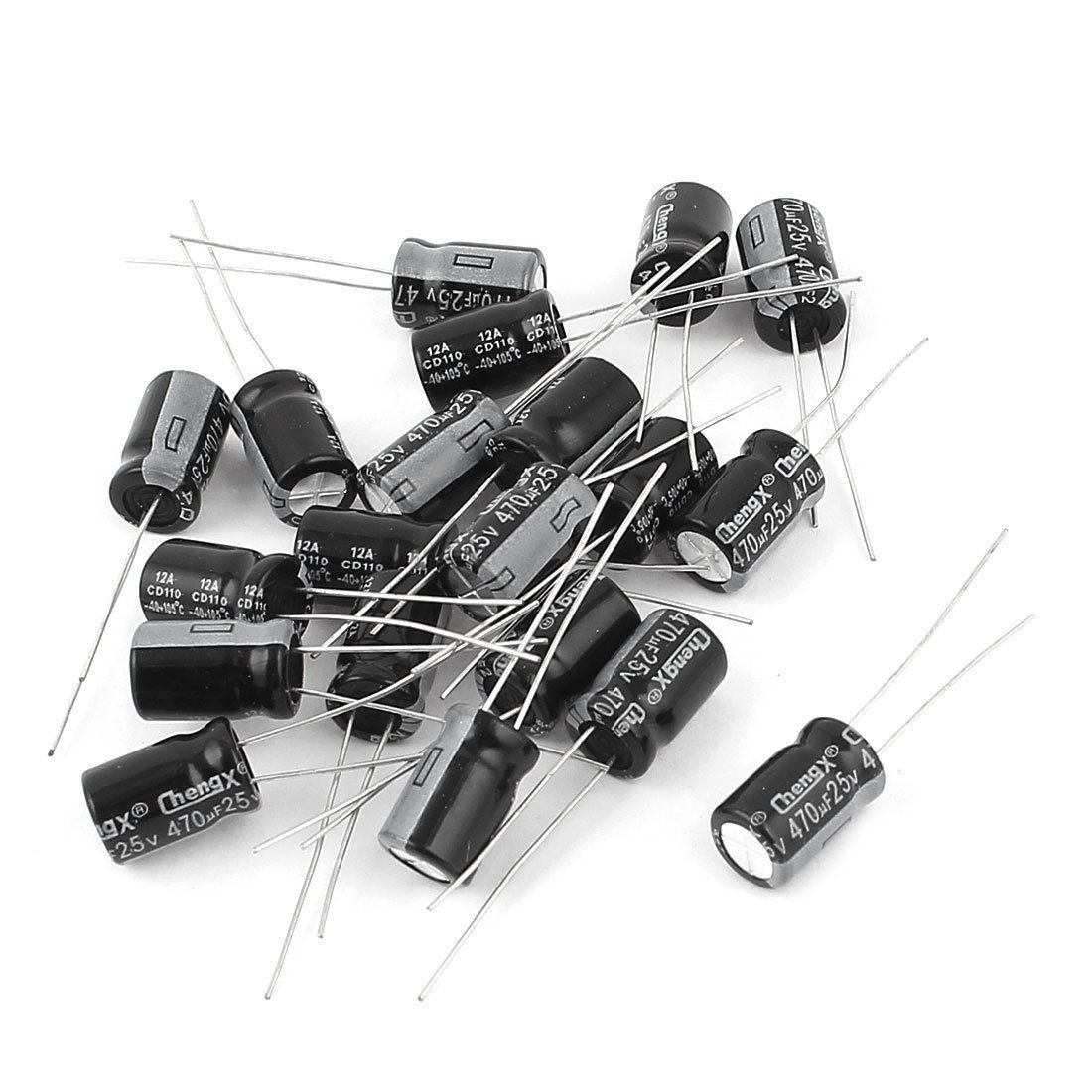 20Pcs 25V 470uF Radial Leads Cylindrical Electrolytic Capacitor 8mm x 12mm