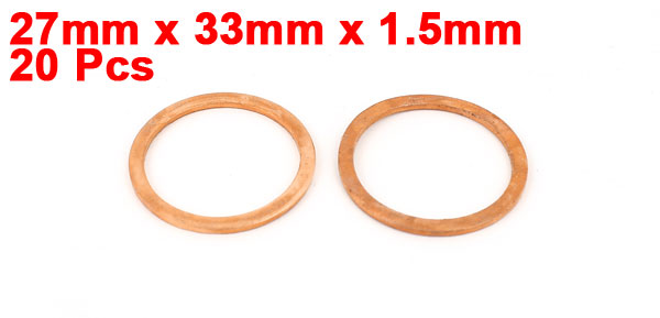 20pcs 27mm x 33mm x 1.5mm Copper Flat Washer Gasket Ring Fastener for Industry