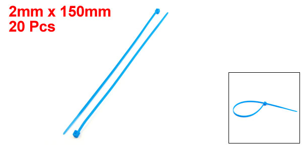 20Pcs 2mm Wide 150mm Length Nylon Cable Zip Ties Wire Cord Strap Blue