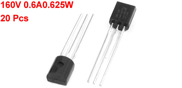 Details20pcs 2N5551 S9018 NPN Fast Switching Speed 3 Pin Power Transistor  Product Name Transistor Mounted Type Through Hole Model 2N5551 Type NPN Collector Base Voltage 160V Collector Current(Continuous) 0.6A Collector Power Max Dissipation 0.625W Max Transition Frequency 100MHz Model S9018 Type NPN Collector Base Voltage 30V Collector Current(Continuous) 0.05A Collector Power Max Dissipation 400mW Max Transition Frequency 1000MHz Pin Size 14 x 1mm/ 0.55" x 0.04" ( L* Pitch) Body Dimension 4.6 x 4.3 x 3.3mm/ 0.18" x 0.17" x 0.13" (L*W*T) Main Color Black Weight 4g Package Content 10 x 2N5551 NPN Transistors 10 x S9018 NPN Transistors