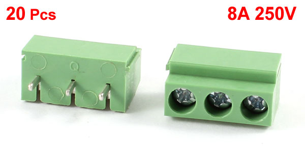 20Pcs 3 Pole 5mm Pitch PCB Mount Screw Terminal Block 8A 250V