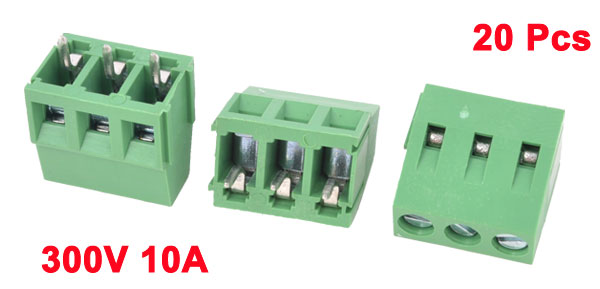 20Pcs 300V 10A 3P Pins Male PCB Screw Terminal Block Connector 5mm Pitch Green