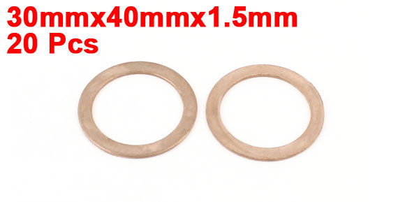 20Pcs 30mmx40mmx1.5mm Flat Copper Crush Washer Sealing Ring Gasket