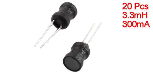 Product Name Radial Lead Inductor Inductance 3.3mH Rating Current 300mA Tolerance 10% Body Size 6 x 8mm / 0.24" x 0.31"(D*H) Lead Distance 3mm / 0.12" Color Black, Silver Tone Weight 21g Package Content 20(±2%) x Radial Lead Inductor - Reviews