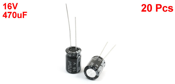 Product Name Electrolytic Capacitor Type Radial Lead Temperature Range -40 to 105°C Withstand Voltage 16V Capacitance 470uF Body Size 8 x 11 mm / 0.3'' x 0.5'' (D*L) Lead Length 19 mm / 0.7'', 25 mm / 1'' Lead Spacing 3 mm / 0.1" External Material Aluminum Net Weight 18g Main Color Black Package Content 20 Pcs x Electrolytic Capacitors - Reviews