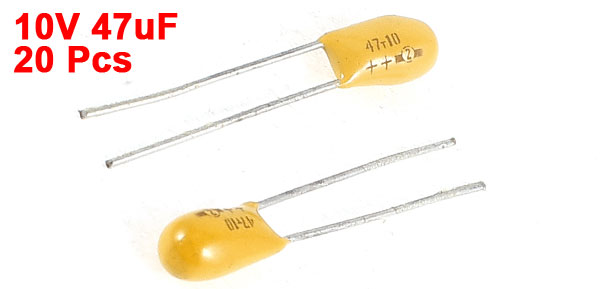 20PCS 47uF 10V 2 Pin Yellow Radial Dipped Tantalum Bead Capacitors