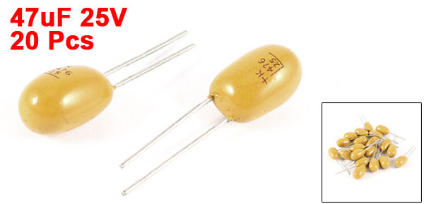 20PCS 47uF 25V 2 Pin Yellow Radial Dipped Tantalum Bead Capacitors