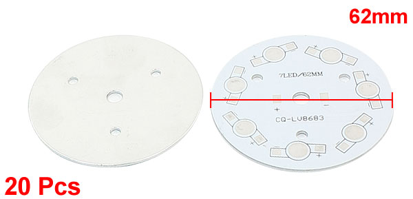 Product Name Aluminum PCB Circuit Board Fit for 7pcs 1W/3W LED in series Diameter 62mm/2.4" Thickness 1.4mm/0.05" Installation Hole Distance 30mm/1.2" Net Weight 213g Materials Aluminum Package Content 20 x Aluminum PCB Circuit Board - Reviews